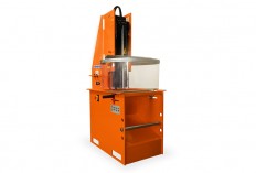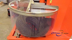 Прес SG02 - ідеальне рішення для станції демонтажу, оскільки дозволяє швидко демонтувати (близько 20 секунд) обода від шини. Коли колесо розташоване на столі, два верхніх гідроциліндри опускаються: перший натискає шину, фіксуючи її на столі, а другий втискає обід (колесо) вниз. Відокремлений обід падає в кошик. Прес SG02 має регулюючі стрижні, які підходять для окремих розмірів коліс. Прес живиться від трифазного електродвигуна потужністю 3 кВт, а гідравлічна система генерує максимальний тиск 160 бар. Максимальний діаметр оброблюваних коліс становить 18 дюймів. Прозорий кожух захищає оператора від можливого викидання осколків з ободів.